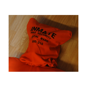 The brand new Prisoners-trouser made in 2 layers orange cotton - by your size and mesures! It has only a sewn on belt, ribbon at waist. Orange, big printed to show where you belong: into PRISON! Each trouser als may be printed with extra free serial number for you.